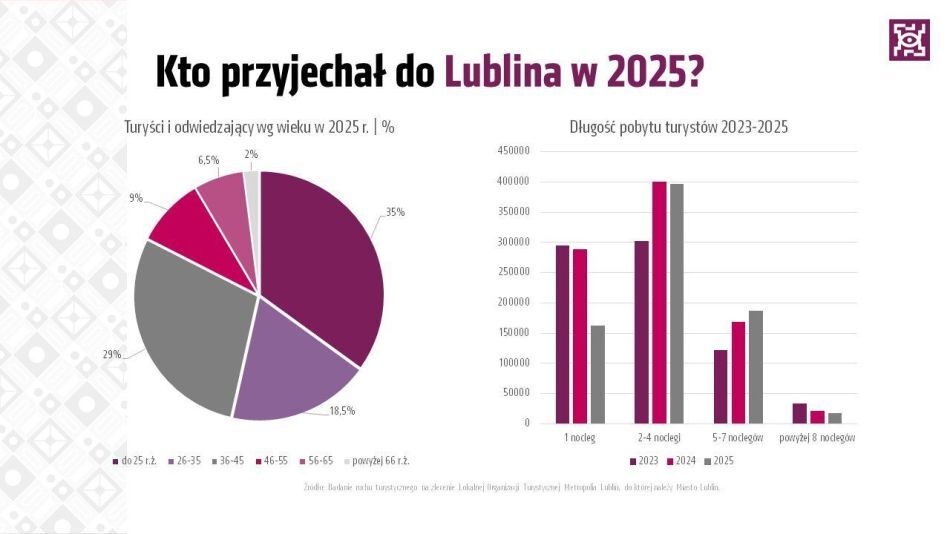 Padł kolejny rekord pod względem liczby turystów odwiedzających Lublin. Według zgromadzonych danych w 2025 r. miasto odwiedziło ponad 2,2 mln osób, co oznacza 15% wzrost w porównaniu z rokiem poprzednim. 77% wszystkich gości stanowili przyjezdni krajowi, wśród których najliczniejszą grupę stanowili mieszkańcy województwa mazowieckiego. Lublin staje się coraz popularniejszym kierunkiem także wśród turystów zagranicznych, m.in. z Wielkiej Brytanii, USA czy Włoch.