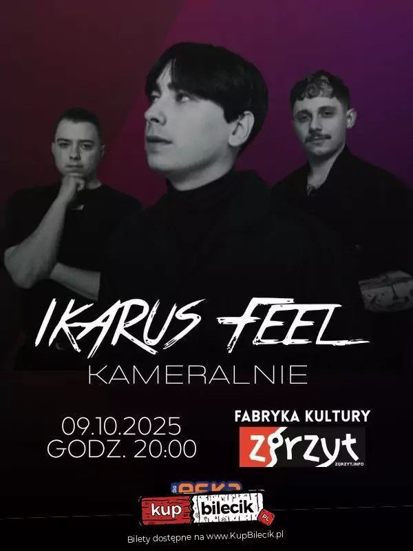 Zapraszamy już 9 października na jedyny w swoim rodzaju koncert Ikarus Feel "Kameralnie". Zależy nam przede wszystkim na spotkaniu z Wami - słuchaczami, którzy na codzień wspieracie nasz trud i pracę. Gwarantujemy kameralny klimat, dużo rozmów i świeżo upieczony materiał, który przedpremierowo usłyszycie podczas tego wydarzenia.