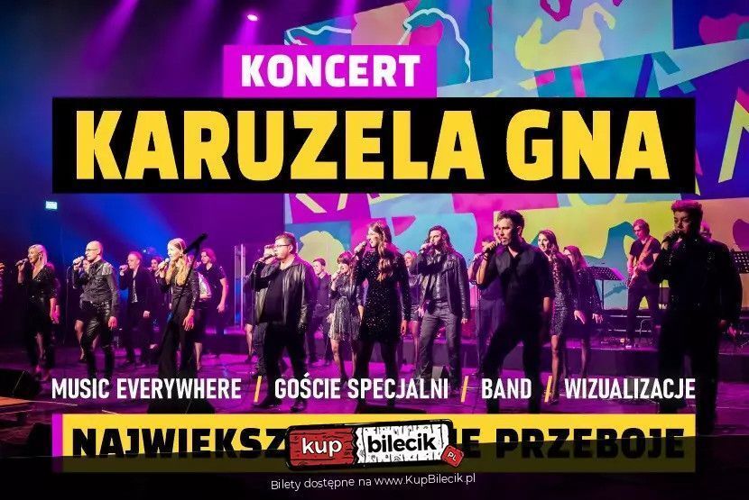 Bilety do nabycia na: KupBilecik.plKoncert Karuzela Gna to spektakularne wydarzenie, które zawiruje Waszym życiem. Usłyszycie zupełnie nowe aranżacje największych polskich przebojów. Nie zabraknie znanych wszystkim utworów, takich jak: "Biała Armia", "Zacznij od Bacha", "Cichosza", "Nie pytaj o Polskę" czy "Ludzkie gadanie".