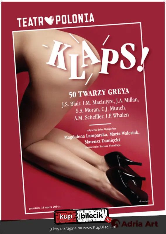| Klaps! 50 twarzy Greyadodano 2025-10-22 19:14:41 rozpoczęcie:2025-12-29 20:15 miejsce:Centrum Kongresowe Uniwersytetu Przyrodniczego, Lublin, ul. Akademicka 15 bilety: Fantazje dojrzałej księgowej, które stają się coraz gorętsze z każdym kolejnym łykiem wina. "Klaps!" to "Pięćdziesiąt twarzy Greya" w adaptacji teatru Krystyny Jandy. Klaps! 50 twarzy Greya artyści:Mateusz Damięcki, Magdalena Lamparska, Marta Walesiak "Pięćdziesiąt twarzy Greya", "Ciemniejsza strona Greya" i "Nowe oblicza Greya" - te trzy powieści erotyczne przyniosły amerykańskiej autorce E.L. James nieprawdopodobną sławę i pieniądze. Książki przetłumaczono na wiele języków (także polski), a w przeddzień Walentynek zapowiadana jest premiera ekranizacji "Pięćdziesięciu twarzy Greya". Dużo wcześniej powstała adaptacja teatralna powieści, a pierwszym europejskim teatrem, który sztukę wystawił, był warszawski Teatr Polonia. Obsada: Mateusz Damięcki, Magdalena Lamparska, Marta Walesiak. Bilety do nabycia na: KupBilecik.pl |