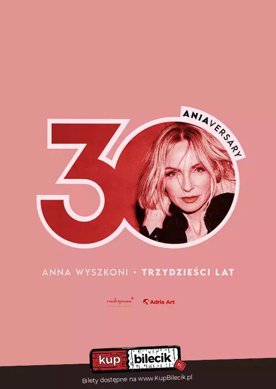 bilety: Ania Wyszkoni - 30 lat. Trzy dekady na scenie, trzy rozdziały jednego wieczoru i jedna artystka, której piosenki dorastały razem z nami. "30 ANIAversary" to jubileuszowa trasa Ani Wyszkoni: powrót do klasyków Łez, przekrojowy set solowych hitów z ostatnich lat oraz zapowiedź nowego albumu. Sentyment, energia i premierowe akcenty - wyjątkowa podróż przez 30 lat muzyki.