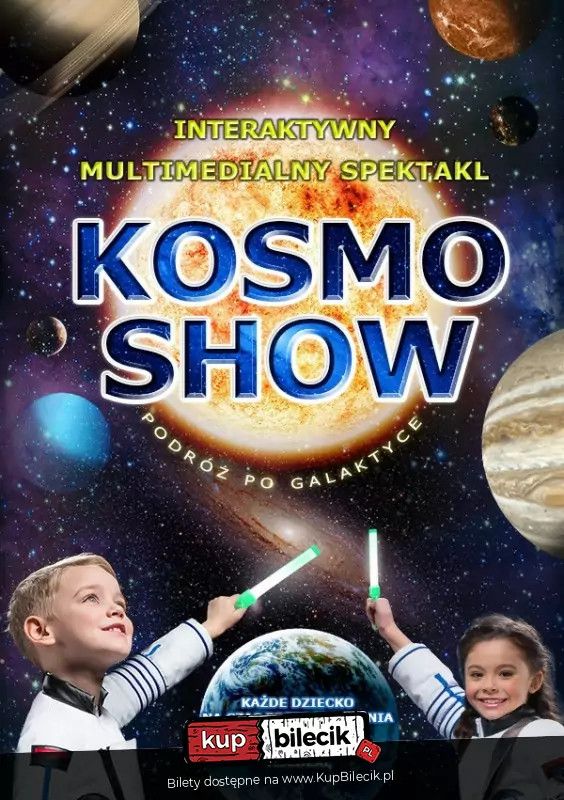 bilety: Kosmo Show - Interaktywne i edukacyjne przedstawienie, które przeniesie dzieci w fascynujący świat kosmosu! W trakcie spektaklu mali widzowie dostaną do ręki specjalne "kosmiczne promienie" - interaktywne pałeczki świetlne, dzięki którym będą mogli aktywnie uczestniczyć w wydarzeniach na ekranie. Wykorzystując te magiczne narzędzia, dzieci będą mogły zapalać gwiazdy, rozbijać asteroidy, sterować statkiem kosmicznym i tworzyć niesamowite efekty! To nie tylko zabawa, ale pełne zanurzenie w kosmiczną przygodę, rozwijającą wyobraźnię i kreatywność. Niezapomniane kosmiczne postacie czekają na Was! "Kosmo Show" to wspaniałe połączenie rozrywki, nauki i interaktywnej zabawy, które przybliży dzieciom tajemnice planet Układu Słonecznego i kosmicznych zjawisk. To spektakl, który rozbudza ciekawość i inspiruje do dalszego odkrywania wszechświata poprzez książki i filmy! Nie przegap okazji, by stać się częścią tej niesamowitej kosmicznej historii! Wsiądź na pokład statku dowodzonego przez Komandora Syriusza i razem z załogą wyrusz na poszukiwanie kryształów, ratując kosmos przed chaosem! Rekomendowane jest dla dzieci od 3 do 12 lat Kosmo Show artyści: Różni wykonawcy„Kosmo Show” to nie tylko widowisko na ekranie! Dzieci będą brać udział w licznych grach, konkursach i tańcach – zarówno na scenie, jak i w całej sali. Wspólnie będą przekazywać ogromne tuby z kosmicznym jedzeniem, naśladować ruchy sympatycznych kosmitów i uczestniczyć w wielkim paradzie planet! Co więcej, dorośli również będą mieli okazję powrócić do świata dziecięcej radości i energii Bilety do nabycia na: KupBilecik.pl |