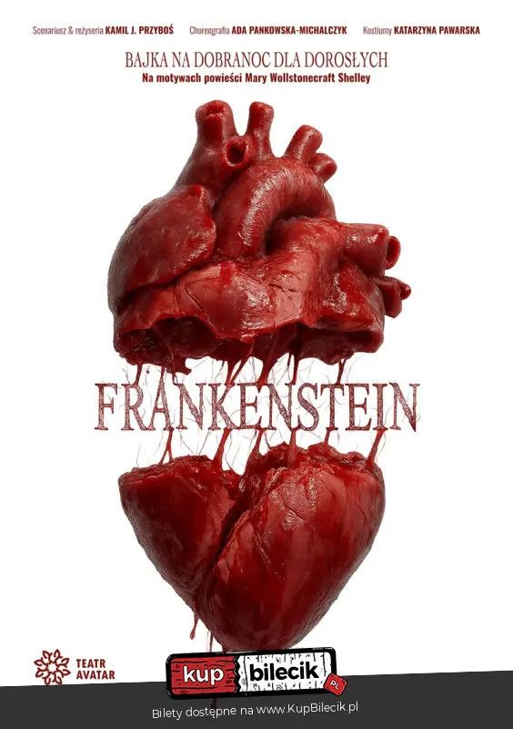 bilety: Frankenstein to spektakl inny niż dotychczasowe. Zanurzony w gęstym, gotyckim klimacie powieści Mary S. Shelley, porzuca popkulturowe schematy, by na nowo opowiedzieć historię nie potwora i szalonego naukowca, lecz człowieka i jego granic. Ilustrujące niepokoje i nadzieje choreografie taneczno-akrobatyczne, przejmujące obrazy przedstawione za pomocą gry światłocienia oraz mroczna atmosfera przeniosą widzów do pełnego napięcia świata Frankensteina - świata, w którym rodzą się pytania o człowieczeństwo, samotność i odpowiedzialność za własne czyny. Autorska adaptacja literackiej klasyki, która staje się lustrem współczesnych wątków. Spektakl otwiera przed widzem przestrzeń refleksji o tym, jak daleko może posunąć się człowiek. Pod powierzchnią widowiska toczy się cicha, lecz elektryzująca dyskusja - o pozorach, konsekwencjach i pułapkach ślepej ambicji. Kto jest prawdziwym potworem? Kim staje się człowiek, który pragnie zostać Panem życiem i śmierci? Frankenstein to hipnotyzująca bajka dla dorosłych, która - niczym napięcie unoszące się w powietrzu - nie daje o sobie zapomnieć, na długo po tym, jak opadnie kurtyna. Reżyseria: Kamil J. Przyboś reżyseria i realizacja światła: Marcin Smiatek Czas trwania: 90 min (bez przerwy). Teatr Avatar - Frankenstein artyści: Różni artyściFrankenstein to spektakl inny niż dotychczasowe. Zanurzony w gęstym, gotyckim klimacie powieści Mary S. Shelley, porzuca popkulturowe schematy, by na nowo opowiedzieć historię nie potwora i szalonego naukowca, lecz człowieka i jego granic. Ilustrujące niepokoje i nadzieje choreografie taneczno-akrobatyczne, przejmujące obrazy przedstawione za pomocą gry światłocienia oraz mroczna atmosfera przeniosą widzów do pełnego napięcia świata Frankensteina – świata, w którym rodzą się pytania o człowieczeństwo, samotność i odpowiedzialność za własne czyny. Bilety do nabycia na: KupBilecik.pl |