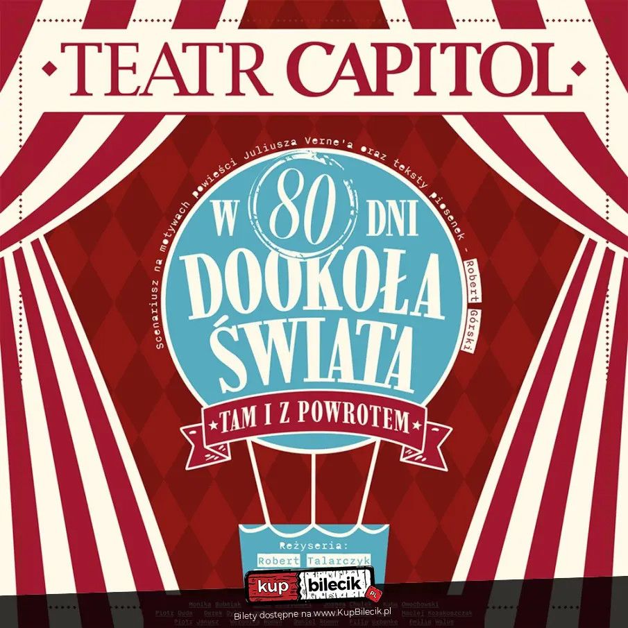 Ważna informacja dla wychowawców i nauczycieli: Przedstawienie "W 80 dni dookoła świata. Tam i z powrotem" stanowi wartościowe uzupełnienie realizacji podstawy programowej z języka polskiego, geografii, wiedzy o społeczeństwie, etyki oraz edukacji kulturalnej. Spektakl oparty jest na powieści Juliusza Verne"a, która nie jest lekturą obowiązkową, lecz bywa wykorzystywana w szkołach jako lektura uzupełniająca lub tekst omawiany fragmentarycznie, szczególnie w kontekście literatury przygodowej i podróżniczej. Uczniowie mają możliwość zapoznania się z teatralną adaptacją klasycznego dzieła literackiego oraz analizy różnic pomiędzy tekstem literackim a jego sceniczną interpretacją. Spektakl rozwija umiejętności odbioru i interpretacji tekstów kultury, sprzyja rozmowom o konstrukcji bohatera, narracji, czasie i przestrzeni w utworze literackim. Tematyka podróży do różnych regionów świata pozwala poszerzyć wiedzę uczniów na temat różnorodności kulturowej, obyczajów i realiów życia w innych krajach, a także stanowi punkt wyjścia do rozmów o otwartości, tolerancji, odpowiedzialności i konsekwencji podejmowanych decyzji. Postawa głównego bohatera sprzyja refleksji nad znaczeniem wytrwałości, systematyczności, współpracy i dotrzymywania zobowiązań. Istotnym elementem przedstawienia jest jego multimedialna forma - nowoczesna scenografia, projekcje i efekty wizualne pełnią funkcję narracyjną i edukacyjną, wspierając zrozumienie zmieniających się miejsc akcji. Spektakl rozwija wrażliwość estetyczną uczniów oraz pokazuje, w jaki sposób współczesny teatr może wykorzystywać środki multimedialne do opowiadania klasycznych historii w atrakcyjny i przystępny sposób. Bilety do nabycia na: KupBilecik.plW 80 dni dookoła świata. Tam i z powrotem artyści: Teatr Capitol Spektakl oparty na znanej powieści Juliusza Verne’a, w adaptacji Roberta Górskiego, to dynamiczna, komediowa opowieść pełna błyskotliwych dialogów, zaskakujących zwrotów akcji i charakterystycznego humoru. Na drodze bohaterów stają barwne postaci z różnych stron świata, jednak największym zagrożeniem okazuje się zdeterminowany inspektor Fix – depczący Foggowi po piętach policjant, którego pościg w każdej chwili może doprowadzić do przegrania wielkiego zakładu. W tej walce z losem liczy się każda sekunda i… czas, który nieubłaganie ucieka. Całość przedstawienia zachwyca wyjątkową warstwą muzyczną oraz pełną energii choreografią. Istotnym wyróżnikiem spektaklu jest scenografia, wzbogacona o projekcje, animacje i efekty wizualne, która w jednej chwili przenoszą widzów z Londynu do Indii, z oceanu na amerykańskie bezdroża. Zmieniające się obrazy harmonijnie współgrają z akcją sceniczną, muzyką i ruchem, tworząc widowisko pełne teatralnej magii. Bilety do nabycia na: KupBilecik.pl |